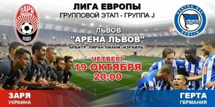"Заря" – "Герта": где смотреть матч Лиги Европы19 октября "Заря" в рамках 3-го тура группового раунда Лиги Европы проведет матч с берлинской "Гертой". Сегодня команды встретятся впервые. Во 2-м туре луганчане сотворили настоящую сенсацию, переиграв в гостях "Атлетик", "Герта", в свою очередь, уступила "Эстерсунду".