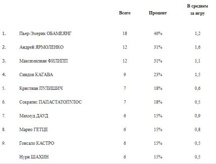 По числу участий в голевых атаках Ярмоленко, например, уступает только Пьеру-Эмерику Обамеянгу, а по системе гол + пас занимает третье место (три плюс четыре). Впрочем, если анализировать средние показатели нашего футболиста, то здесь он — один из самых полезных игроков дортмундской команды.
