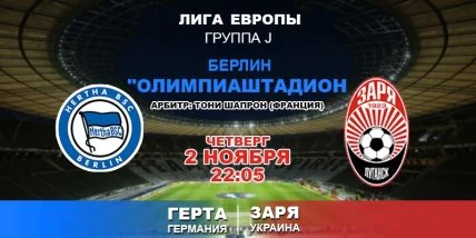 Прямая текстовая трансляция матча группового раунда Лиги Европы между берлинской "Гертой" и луганской "Зарей".