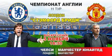Прямая текстовая трансляция поединка 11 тура чемпионата Англии - "Челси" - "Манчестер Юнайтед".