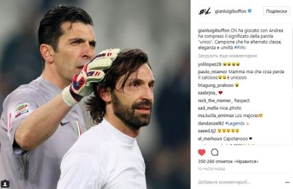 "Мое футбольное путешествие закончилось": прощальное письмо Андреа ПирлоДжанлуиджи Буффон