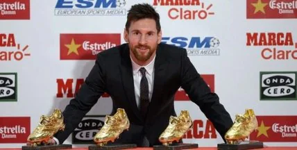 О том, что аргентинец в четвертый раз стал ее обладателем, стало известно еще в мае, но награда была вручена только сейчас. Золотую бутсу аргентинцу вручил партнер по команде Луис Суарес.