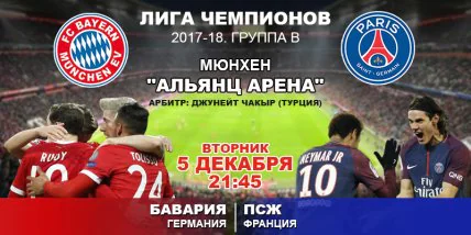 "Бавария" — "ПСЖ": где смотреть матч 6 тура Лиги чемпионов