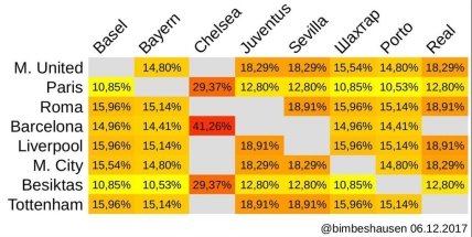 Любители цифр подсчитали вероятность попадания клубов друг на друга в 1/8 финала Лиги чемпионов.