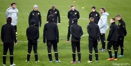 Немецкий футбольный клуб "Боруссия" сегодня провел тренировку на стадионе "Олимпийский".