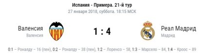 «Реал» с 38 очком в 20 матчах занимает четвертое место в таблице. «Валенсия» (40 баллов, 21 игра) — третья.