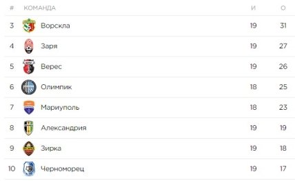 После 19 туров УПЛ определились только две команды, которые попадут в верхнюю шестерку — Динамо и Шахтер. На оставшиеся четыре места претендуют сразу восемь клубов, при этом наибольшие шансы имеет Ворскла, идущая на 3-м месте с преимуществом над ближайшим соперников в лице Зари в 4 очка (31 против 27).