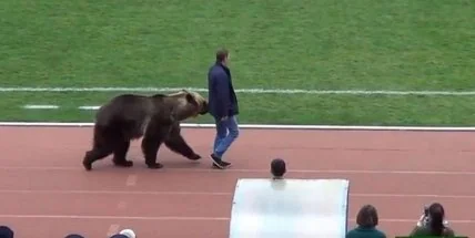 Перед игрой ПФЛ, третьего по силе футбольного турнира в России, к трибунам вывели дрессированного медведя в наморднике, который сел на задние лапы и несколько раз похлопал. Диктор стадиона пошутил, что Тима будет открывать матчи предстоящего чемпионата мира в России.
