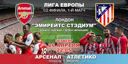 Сегодня, 26 апреля, в Лондоне местный Арсенал сыграет с Атлетико в рамках первого полуфинального матча Лиги Европы. Это станет первой встречей команд в еврокубках. Рассудит встречу французская бригада арбитров во главе с Клеманом Тюрпеном. Текстовая онлайн-трансляция матча начнется в 22:00 по киевскому времени. Кроме, того в этой статье будет доступно видео лучших моментов встречи. Ответная игра пройдет в Мадриде 3 мая. Победитель этой пары сразится с победителем противостояния Марсель - Зальцбург. Финал Лиги Европы состоится 16 мая в Лионе.
