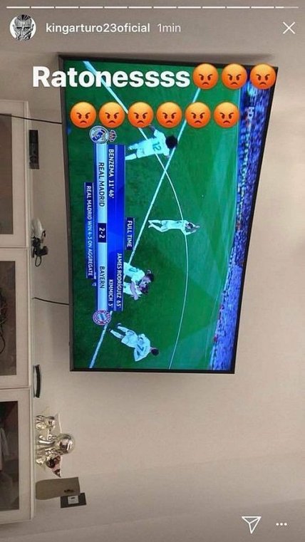 На этом чилийский футболист Баварии не остановился. После финального свистка Видаль оставил надпись "крысы" на фоне празднующих победу игроков Реала.