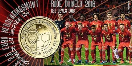 К старту ЧМ-2018 в Бельгии в честь национальной сборной по футболу выпустили монеты номиналом 2,5 евро. Коллекционная монета немного меньше, чем двухевровая, выполнена из золота и является законным платежным средством по всей стране.