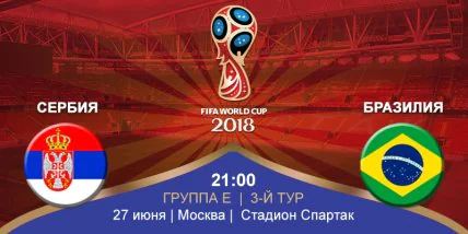 Прямая текстовая трансляция матча 3-го тура группы Е на чемпионате мира по футболу Сербия - Бразилия.