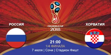 Прямая текстовая трансляция матча 1/4 финала чемпионата мира по футболу Россия - Хорватия.