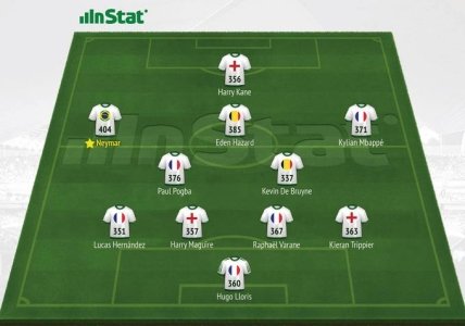 Лучшим игроком чемпионата мира по среднему InStat Index стал 26-летний форвард сборной Бразилии Неймар, набравший 404 балла.