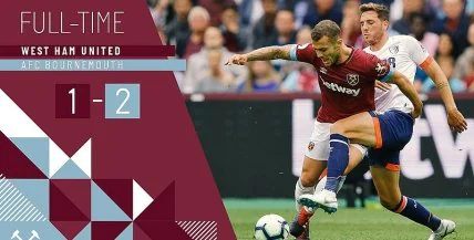 "Вест Хэм" был впереди в счете после первого тайма. С пенальти отличился Арнаутович. После перерыва "Борнмут" вышел вперед благодаря голам Уилсона и Кука. Счет 2:1 в пользу гостей сохранился до финального свистка. Это второе поражение "Вест Хэма" в сезоне.
