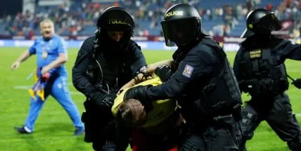 Напомним, что после матча полиция арестовала восьмерых фанатов сборной Украины за попытку прорваться на поле, все они в итоге отделались штрафами.
