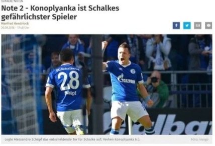 "Коноплянка – самый опасный игрок в составе Шальке. Дважды (60 и 72 минуты) он попал в перекладину и создал единственный в матче гол для Шопфа роскошной передачей с фланга. Коноплянка сыграл большую роль в этом успехе", – пишет издание.