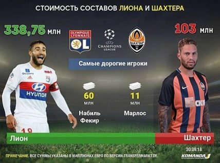 Стоимость игроков Лиона гораздо выше стоимости Шахтера