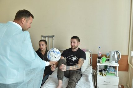 Андрей Шевченко вместе с игроками сборной Украины проведали воинов в военном госпитале Харькова.