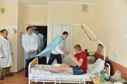 Главный тренер Андрей Шевченко, его ассистент Александр Шовковский, капитан Андрей Пятов, игроки Тарас Степаненко и Роман Яремчук проведали воинов в палатах, пожелав им скорейшего выздоровления, чтобы в ближайшее время прийти поддержать сборную на стадион, и, конечно, поздравив с праздником Покрова.