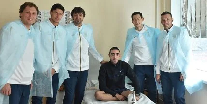 Главный тренер Андрей Шевченко, его ассистент Александр Шовковский, капитан Андрей Пятов, игроки Тарас Степаненко и Роман Яремчук проведали воинов в палатах, пожелав им скорейшего выздоровления, чтобы в ближайшее время прийти поддержать сборную на стадион, и, конечно, поздравив с праздником Покрова.