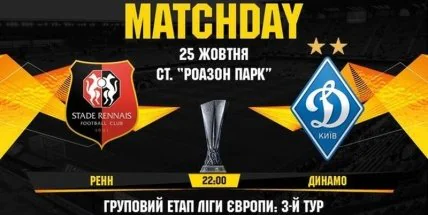 Киевское "Динамо" в третьем туре группового этапа Лиги Европы сыграет на выезде с французским "Ренном".