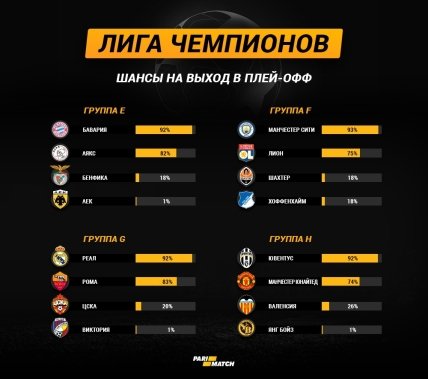 Лига чемпионов: шансы команд на выход в плей-офф по итогам 3-х туров