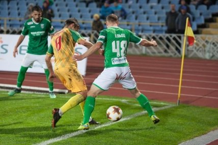 Поединок в Черкассах не получился зрелищным с первых же минут. Хозяева не сделали ставку на быстрый гол, вопреки ожиданиям и собственным традициям. Гости же долгое время не могли подобрать ключей к владениям команды Кирилюка. Единственный момент, который возник у "бело-зеленых" в первые полчаса поединка, следствие индивидуальных действий Карраскаля не левом фланге с прострелом под удар Понде. Но мяч слетел с ноги полузащитника и улетел высоко в небеса. В концовке тайма возник первый момент и у хозяев, но удар Сторчоуса с разворота результативным не стал.