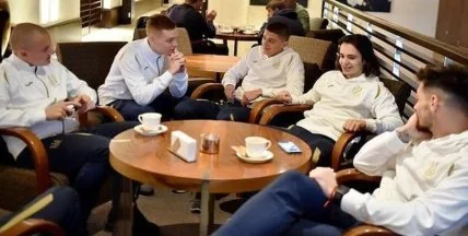 Вчера на ужине сборной Украины, у которой 12 ноября началась подготовка к матчам со сборными Словакии (16 ноября в Трнаве; Лига наций УЕФА) и Турции (20 ноября в Анталье; спарринг), двое новичков, которых Андрей Шевченко вызвал в сборную, прошли обряд посвящения. Традиционно это – исполнение песни перед всем коллективом.