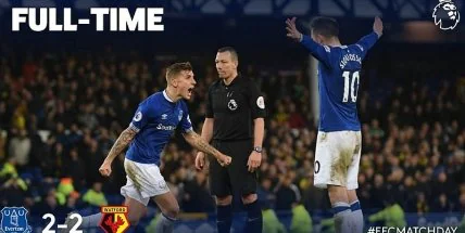 В матче 16-го тура английской Премьер-лиги Эвертон на своем поле сыграл вничью против Уотфорда — 2:2.