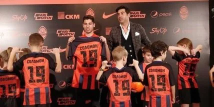 "Шахтер" в присутствии детей, одетых в футболки игроков, представил новичков – Манора Соломона и Валерия Бондаренко.