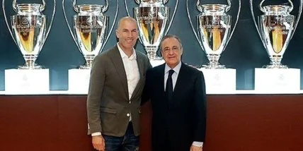 Многолетний президент «Реала» Флорентино Перес появился с Зинедином Зиданом в пресс-зале «Сантьяго Бернабеу» после того, как стало официально известно, что французский тренер возвращается в «Реал».