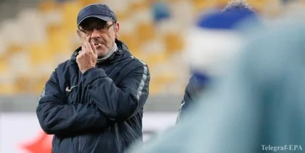 "Пенсионеры" уже провели тренировку на поле главной арены Украины, и тренер Маурицио Сарри оказался недоволен качеством газона.