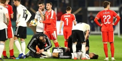 Полузащитник сборной Германии Лерой Сане получил повреждение в матче со сборной Сербии, который вчера завершился ничьей 1:1.