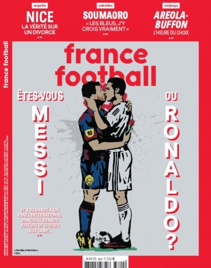 Целующиеся Месси и Роналду — на обложке нового выпуска France Football.