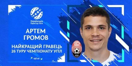 Экспертный совет Премьер-лиги Украины выбрал полузащитника Зари Артема Громова лучшим игроком 26-го тура чемпионата, о чем сообщает сайт УПЛ.
