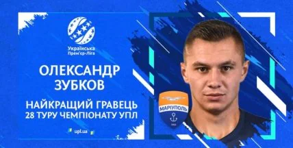Экспертный совет Премьер-лиги Украины признал полузащитника Мариуполя Александра Зубкова лучшим игроком 28-го тура чемпионата, о чем сообщает официальный сайт УПЛ.