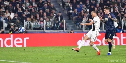 В матче 4 тура группового этапа Лиги чемпионов Криштиану Роналду ворвался в штрафную и с лету пробил под перекладину ворот Давида Де Хеа.