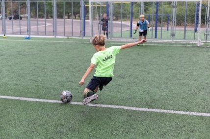Итак - футбол! футболисты "Чайки" разделились на две команды - "синих" и "зеленых" и начали футбольный матч. И тут стало понятно, почему именно "Чайка" - лучшая команда Черкасс (U-10): бескомпромиссная борьба, финты, красивые передачи, уверенное завершение, конечно, не без ошибок и неудачных действий. Победу в матче одержала команда "синих" (3:1).