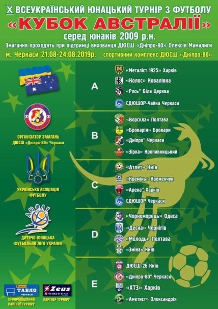 В Черкассах стартовал престижный дестко-юношеский турнир Аustralia Cup среди футболистов 2008 года рождения (U-11). Этот турнир стал юбилейным - десятым в истории. Так что и предлагаю поговорить о юношах 2009 года рождения (U-10), символично, не правда ли? Турнир в возрастной категории U-10 пройдет в период с 21 по 24 августа.