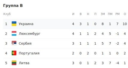 Сборная Украины выступает в группе В, где также выступают сборные Португалии, Сербии, Литвы и Люксембурга.