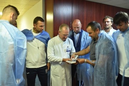 В дружеской беседе главный врач госпиталя Сергей Рыженко вспомнил, как чуть более года назад руководители национальной ассоциации пришли в заведение с кубками Лиги чемпионов УЕФА. По его словам, тогда Андрей Павелко пообещал, что сборная обязательно приедет к Днепру и проведет здесь один из своих поединков.