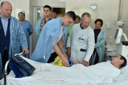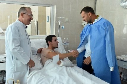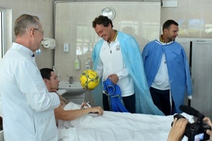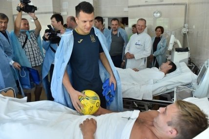 Накануне товарищеского матча сборной Украины против Нигерии президент УАФ Андрей Павелко вместе с главным тренером сине-желтых Андреем Шевченко и тренером Александром Шовковским побывали в Днепропетровской областной клинической больнице, где проходят лечение раненые участники боевых действий на Донбассе.