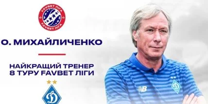 Главный тренер Динамо Алексей Михайличенко признан лучшим тренером 8-го тура Favbet Лиги, сообщает официальный сайт УПЛ.