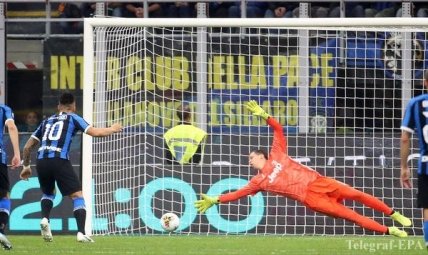 28 - Лукаку и Лаутаро придумали острый момент: аргентинец бил  с острой позиции, но не смог переиграть голкипера.