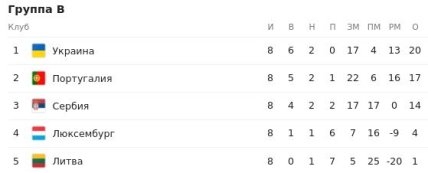 Сербы финишировали третьими в группе, набрав 14 очков. Украинцы стали первыми (20), португальцы — вторыми (17).