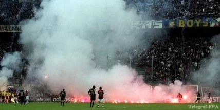 Во время отборочного матча чемпионата мира-2010 болельщики бросали на поле файеры, за что УЕФА оштрафовал Федерацию футбола Украины на 412 557 гривен.