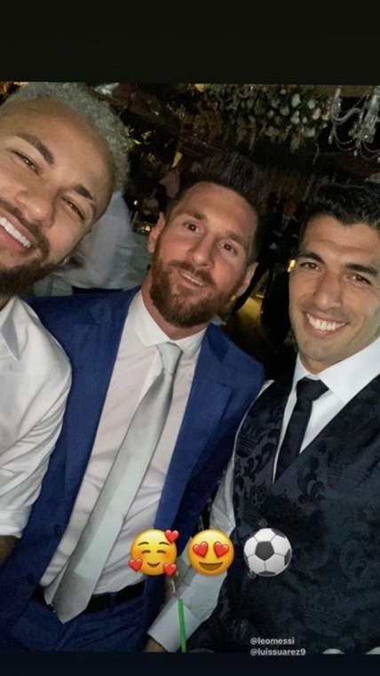 Нападающий «Пари Сен-Жермен» Неймар в своём инстаграме опубликовал совместную фотографию со своими бывшими одноклубниками – форвардами «Барселоны» Лионелем Месси и Луисом Суаресом.