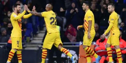 В 19-м туре футбольного чемпионата Испании (Ла Лига) «Барселона» сыграла вничью на чужом поле с «Эспаньолом» 2:2.
