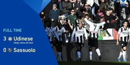 В своем заключительном матче первого круга первенства Серии А Удинезе неожиданно крупно обыграл Сассуоло.